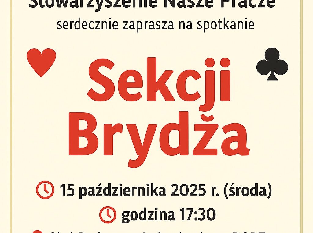 Spotkanie ma charakter otwarty – zapraszamy wszystkich miłośników brydża, zarówno początkujących, jak i zaawansowanych.