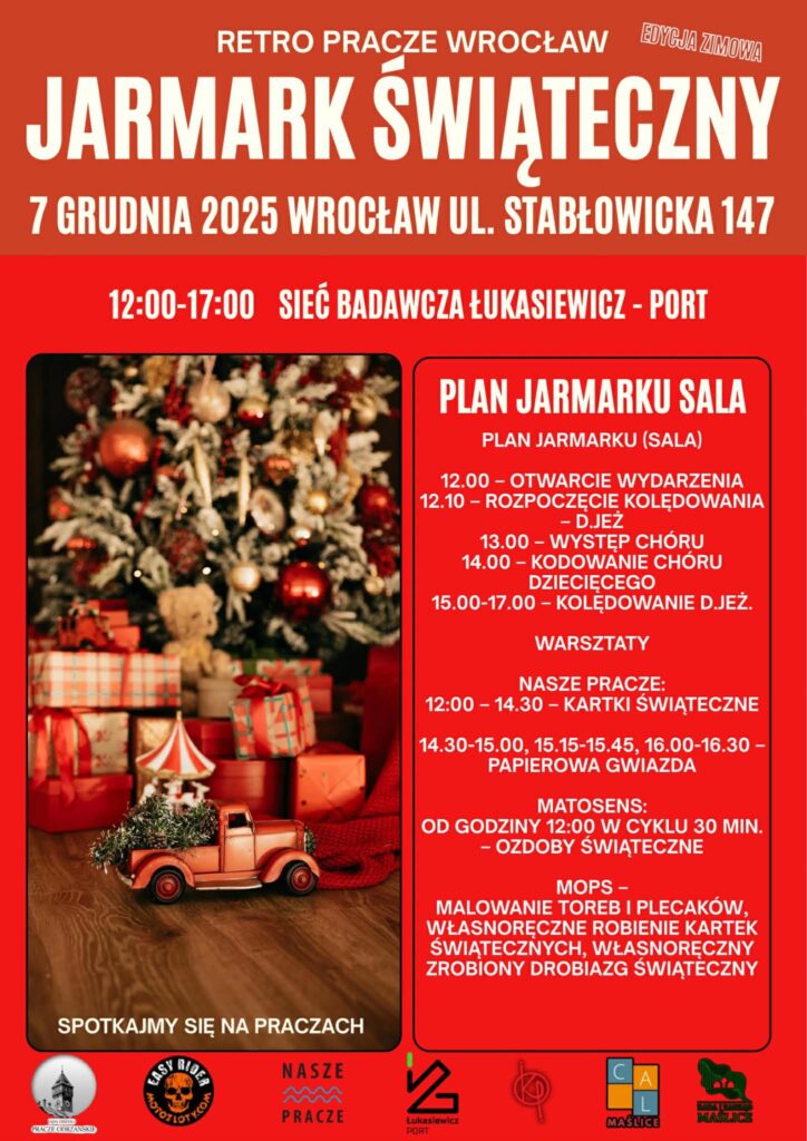 Już 7 grudnia 2025 r. od godziny 12 zapraszamy wszystkich mieszkańców Wrocławia (i nie tylko) na pierwszy Jarmark Świąteczny, który odbędzie się na terenie Kampusu Pracze – Stabłowicka 147, organizowany razem z :